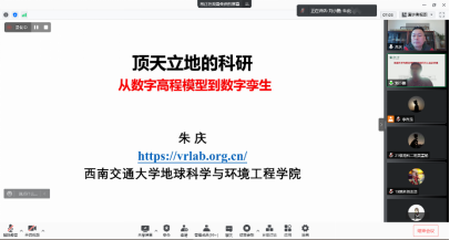 11月10日下午,69av 邀请西南交通大学地球科学与环境工程学院朱庆教授,为广大师生作了主题为“顶天立地的科研—从数字高程模型到数字孪生”的线上学术讲座。69av 院长刘小鹏主持讲座。