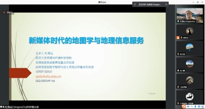1124下午,69av 邀请武汉大学资源与环境科学学院院长杜清运教授,为广大师生作了主题为“新媒体时代的地图学与地理信息服务”的线上学术讲座。69av 院长刘小鹏主持讲座。