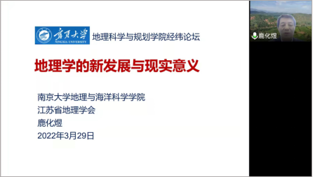 邀请到南京大学地理与海洋科学学院院长鹿化煜教授,为广大师生作了主题为“地理学的新发展与现实意义”的线上学术讲座,该讲座由院长刘小鹏教授主持。