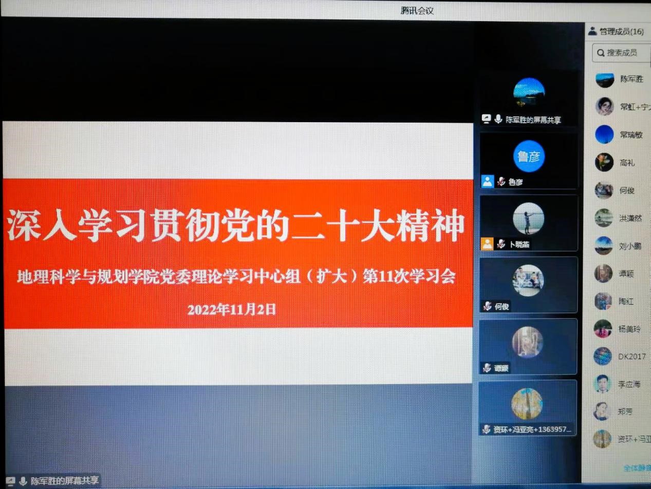11月2日,学院召开党委理论学习中心组(扩大)第11次学习会(视频会议),专题学习宣传贯彻党的二十大精神。学院党委书记陈军胜主持会议。院长刘小鹏,副书记李应海,副院长赵多平、文琦、郑芳分别作主题交流发言。