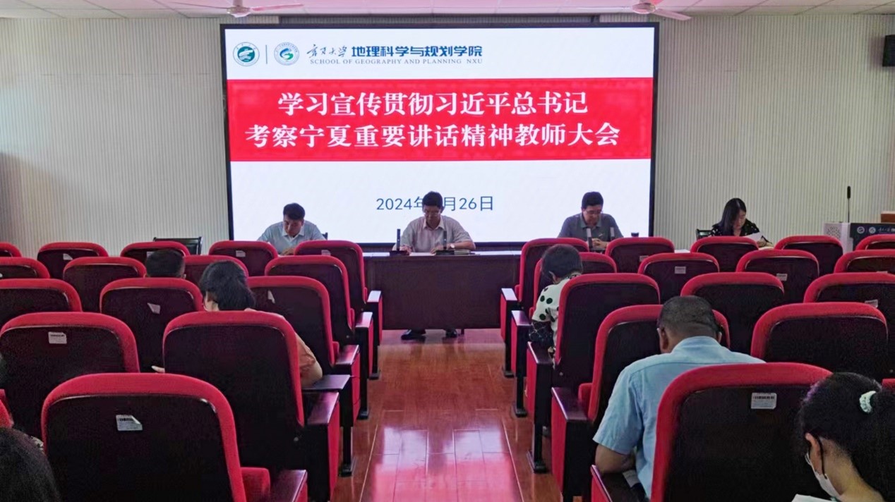 会议指出,习近平总书记考察宁夏重要讲话为我们奋力谱写中国式现代化宁夏篇章提供了根本遵循,学习好、宣传好、贯彻好习近平总书记考察宁夏重要讲话精神是当前和今后一个时期的首要政治任务和重大政治责任。学院要从坚定拥护“两个确立”、坚决做到“两个维护”的政治高度,把学习贯彻习近平总书记考察宁夏重要讲话精神同党的十八大以来对宁夏系列重要讲话指示批示精神结合起来,按照自治区党委、学校党委要求,一体深学细悟、整体融会贯通、坚决贯彻落实�