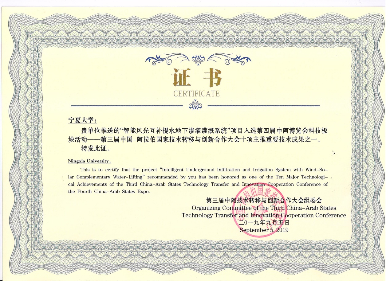 近期,å®å¤å›žæ—自治区人民政府å‘布了《å®å¤å›žæ—自治区人民政府关于2023å¹´åº¦è‡ªæ²»åŒºç§‘å¦æŠ€æœ¯å¥–åŠ±çš„å†³å®šã€‹ï¼Œç”±å™å…†å†›æ•™æŽˆä¸»æŒï¼Œå¦é™¢æ•™å¸ˆä½•ä¿Šå‰¯ç ”ç©¶å‘˜ã€æŽèŒœç ”究员ã€éŸ©ç£Šç ”究员和王芳副教授共åŒå‚与完æˆçš„《ä¸é˜¿æ—±åŒºç»¿è‰²æ™ºèƒ½é«˜æ•ˆèŠ‚æ°´å…³é”®æŠ€æœ¯ä¸Žè£…å¤‡è§„æ¨¡åŒ–åº”ç”¨ã€‹è£èŽ�2023å¹´åº¦è‡ªæ²»åŒºç§‘å¦æŠ€æœ¯è¿›æ¥å¥–一ç‰å¥–ã€�