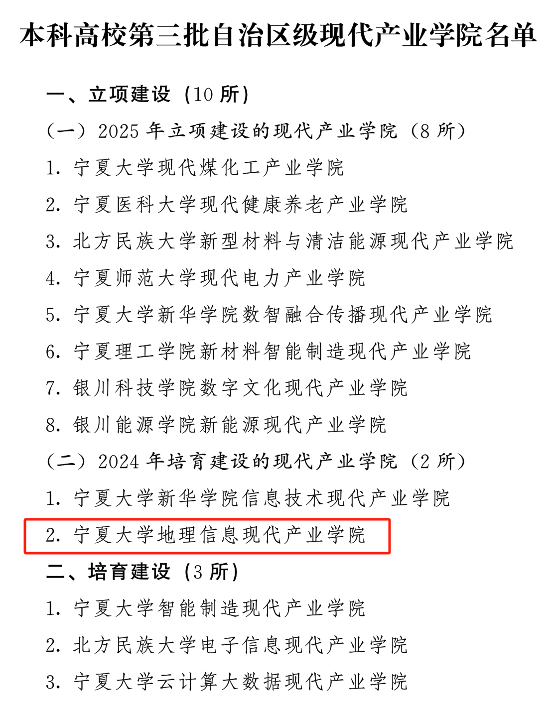 5月13日,宁夏回族自治区教育厅、发展和改革委员会、工业和信息化厅联合发布《关于公布本科高校第三批自治区级现代产业学院名单的通知》(宁教高〔2025〕52号),69av 申报的“69av 地理信息现代产业学院”正式脱培,成功入选自治区级第三批10所现代产业学院立项建设单位。这是69av 继“北斗与遥感技术应用”微专业建设后,在深化人才培养模式改革,推进产教融合协同育人实践的又一次重大突破,标志着69av 在深化产教融合、服务自治区“六新六特六优”产业发展战略中迈出关键一步。