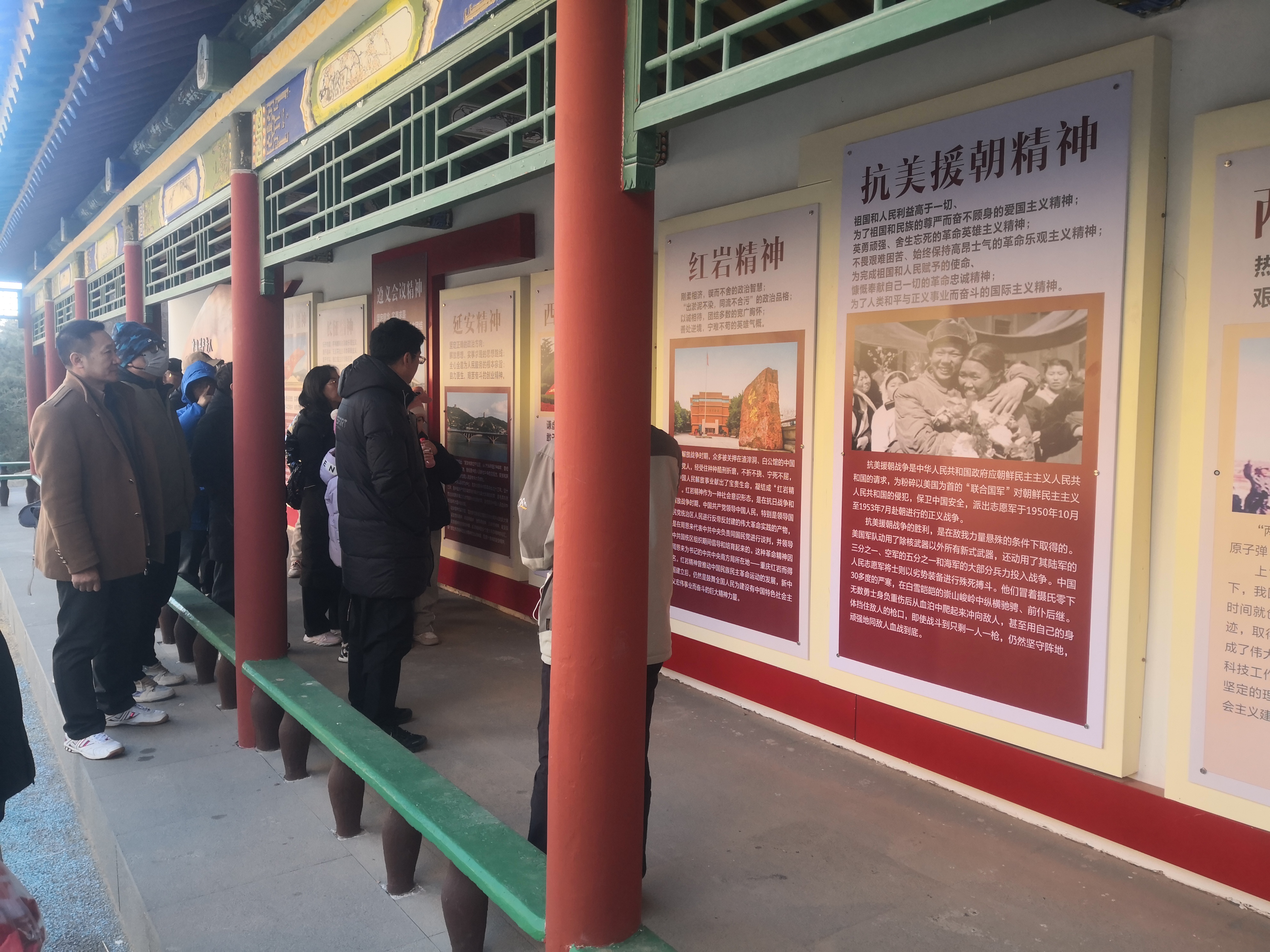 学院全体党员乘车前往宁夏贺兰山国家森林公园绿水青山里的红色吸引—党建广场,认真聆听了讲解员对中国精神、英模英烈事迹、党风廉政建设和党史的讲解。