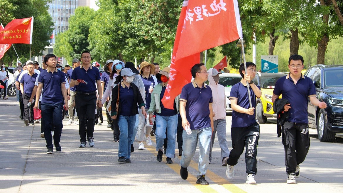 大家从怀远校区凌云广场出发,途经金波湖健步道,跨过人行天桥,在贺兰山校区绕行一周后,最终奔向凌云广场终点。活动中,大家精神抖擞,昂首阔步,甩起胳膊,迈开步伐,感受运动带来的愉悦,充分展现出健康、文明、积极向上的精神风貌。一路行来,一砖一石都蕴含着校园文化,照一照金波湖的水,看一看新中国成立75周年大事记图片展,唤一片匠心,铸一缕师魂,树一个躬耕教坛的理想。
