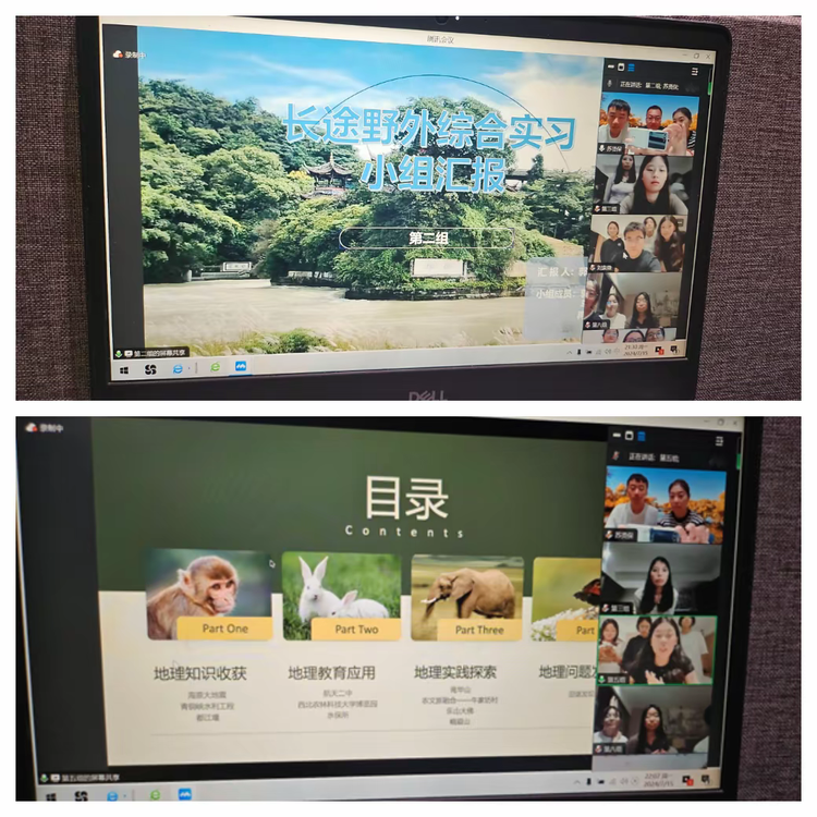 åœ¨çº¿ä¸Šå®žä¹ æ€»ç»“æ±‡æŠ¥ä¸ï¼Œå…«ä¸ªå®žä¹ å°ç»„轮番上阵,总结汇报形å¼å¤šæ ·ã€å†…容丰富,展现出良好的团队å作能力。从å®å¤åˆ°é™•西å†åˆ°å››å·ï¼Œæ¯ä¸€ç‰‡åœŸåœ°éƒ½ç•™ä¸‹äº†åŒå¦ä»¬æŽ¢ç´¢çš„足迹,既有对自然地ç†å¥‡è§‚的惊å¹ï¼Œå¯¹å±±å·æ²³æµå£®ä¸½çš„赞å¹ï¼Œå¯¹åœ°è´¨æž„é€ å¥¥ç§˜çš„æ„Ÿå¹ï¼›ä¹Ÿæœ‰å¯¹äººæ–‡ä¸ŽåŸŽå¸‚地ç†çš„æ´žå¯Ÿï¼Œå¯¹åŸŽå¸‚å»ºè®¾ä¸Žå¯æŒç»å‘å±•çš„æŽ¢è®¨ï¼›æ›´æœ‰å°†æœ¬æ¬¡å®žä¹ æ”¶èŽ·èžå…¥æ•™è‚²å®žè·µçš„奇æ€å¦™æƒ³ï¼Œå±•现了地ç†ä¸“ä¸šçš„æ— é™å¯èƒ½ã€�