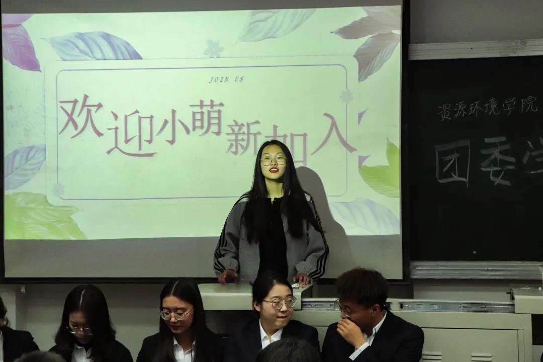 2020级学生介绍各个部门的基本情况,见面会由办公室负责人王怡雯主持。