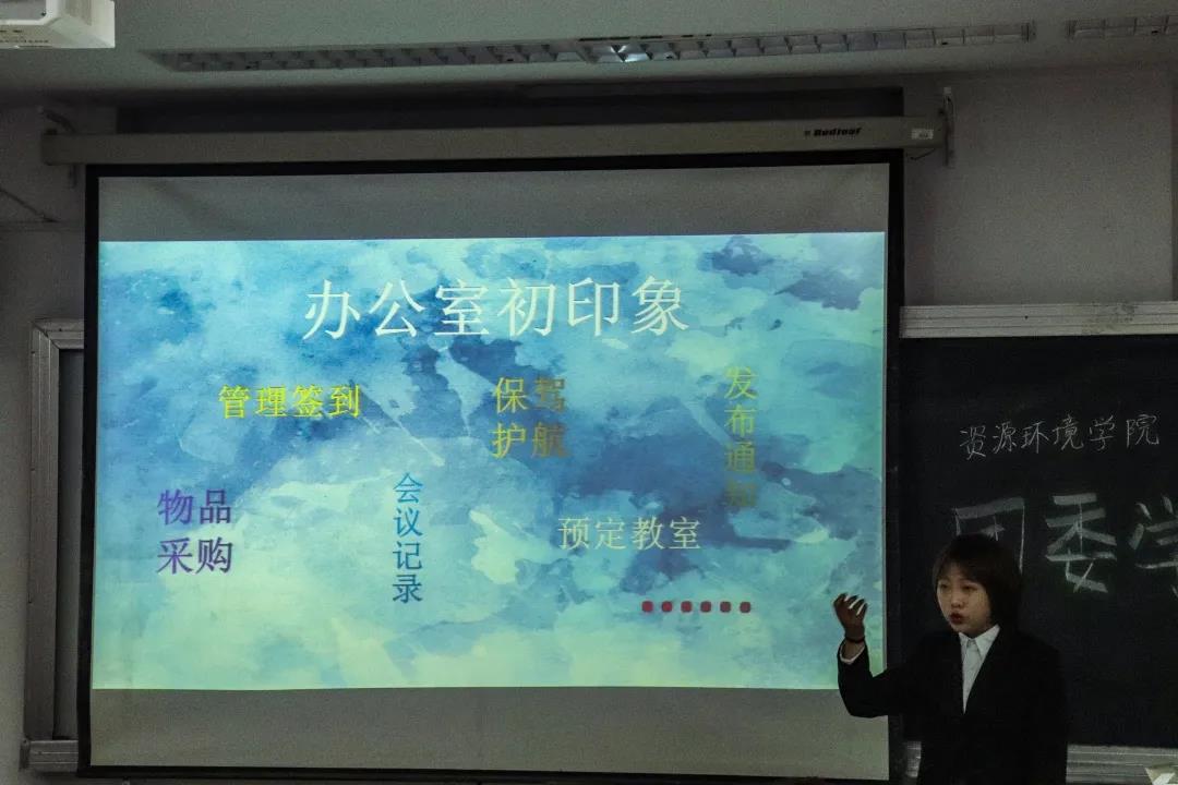 团委、学生会及易班中心的各项工作职责,更加强了学生干部与同学之间的交流,加深了新生对各个学生组织的理解,为日后更好地开展学生工作奠定基础。团委学生会及易班中心期待着每一位新同学的加入,同时也希望同学们在选择部门的时候,要根据自身的特点,选择适合自己的部门,在接下来的时间里,练得一身本领, 不虚度大学时光。