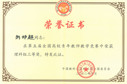10月30日,由中国教科文卫体工会全国委员会主办的第五届全国高校青年教师教学竞赛决赛落下帷幕。我69av 教师刘邓超获得三等奖。